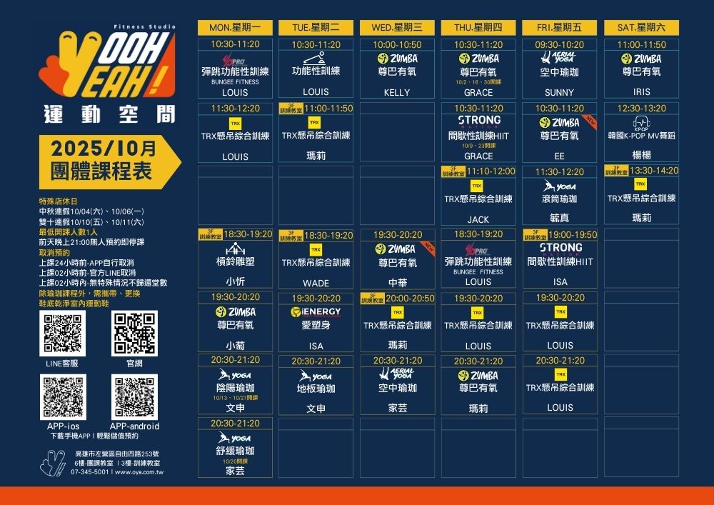 2025/10月團體課程表